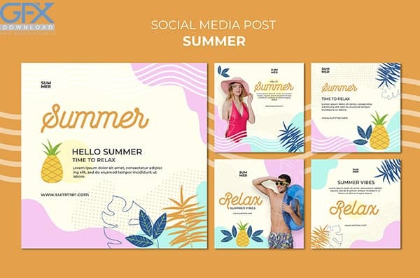 دانلود مجموعه قالب پست اینستاگرام لایه باز با طرح های تابستانه