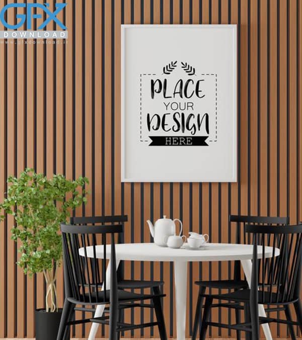 موکاپ قاب عکس با طرحی زیبا و شیک مناسب جهت استفاده و ویرایش در نرم افزار فتوشاپ. همانطور که در پیش نمایش عکس مشاهده می کنید این موکاپ در فضای داخلی یک اتاق نشیمن با میز و صندلی است. این موکاپ قاب عکس در اتاق نشیمن لایه باز دارای یک فریم عکس مستطیل عمودی می باشد با فرمت PSD طراحی شده و کاملا قابل ویرایش و تغییر می باشد. این طرح لایه باز است و می توانید آن را در نرم افزار فتوشاپ ویرایش کنید. به راحتی تصویر یا طرح دلخواه خود را درون این موکاپ فریم عکس قرار دهید و پیش نمایش زیبایی از تصویر خود ایجاد کنید.