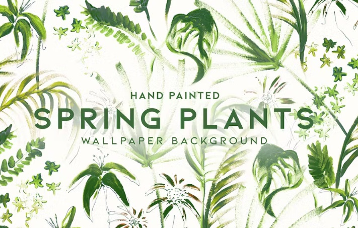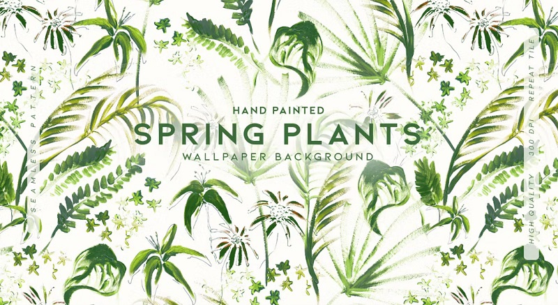 ✅ نام پترن فتوشاپ: Hand Painted Spring Plants✅ JPEG، PNG و فایل PAT فتوشاپ