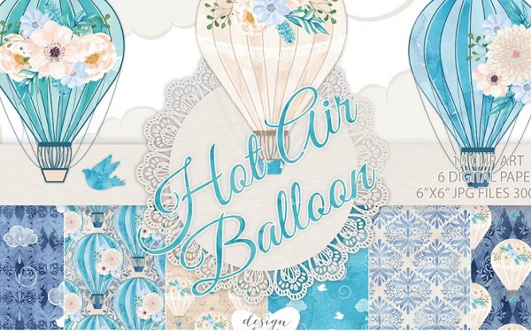 ✅ نام تکسچر فتوشاپ: Hot air balloon blue pack✅ شامل 6 کاغذ دیجیتال با فرمت فایل JPG