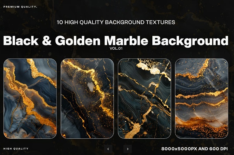 ✅ نام تکسچر: 10 Abstract Gold & Black Marble Texture✅ شامل 10 فایل با فرمت JPG (8000x5000px و 600dpi)