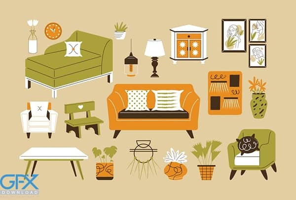 مجموعه تصاویر دکور خانه یک صحنه بسیار پر کاربرد و زیبا است که برای وب سایت ، اپلیکیشن ها ، صفحه فرود و کلیپ ارت/پروژه تصویرسازی صفحه آینده شما مناسب است ، با دانلود وکتور دکوراسیون منزل می توانید ترکیب صحنه خود را ایجاد کنید. این مجموعه تصویر وکتور با فرمت eps و ai در سایت قرار گرفته اند که می توان آن ها را در طراحی و گرافیک به خصوص انیمیشن سازی در نرم افزار ایلاستریتور به صورت لایه باز مورد استفاده قرار داد. این وکتور دکوراسیون داخلی منزل شامل انواع مبلمان، میز، گلدان، قاب عکس و غیره می باشد. همه فایلها در Adobe Illustrator (Ai CC) و EPS Illustrator 10 (EPS) ارائه می شوند. کاملاً قابل تنظیم و قابل ویرایش (Ai CC) و EPS Illustrator 10 (EPS).