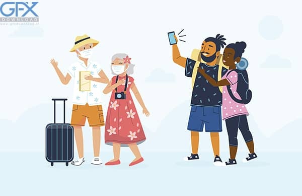 در این پست شاهد طرح وکتور با موضوع توریست و گردشگر با فرمت EPS و AI می باشید. دانلود وکتور توریست همراه با چمدان ، کاراکتر های مسافر زن و مرد با ماسک و بدون ماسک می باشد. مجموعه ای از وکتور افراد در حالت های مختلف با طراحی کارتونی و فلت قابل استفاده در انواع طرح های گرافیکی و تبلیغاتی. وکتور طرح های مسافرت و توریسم قابل ویرایش در نرم افزار های ایلوستریتور و کورل دراو می باشد.