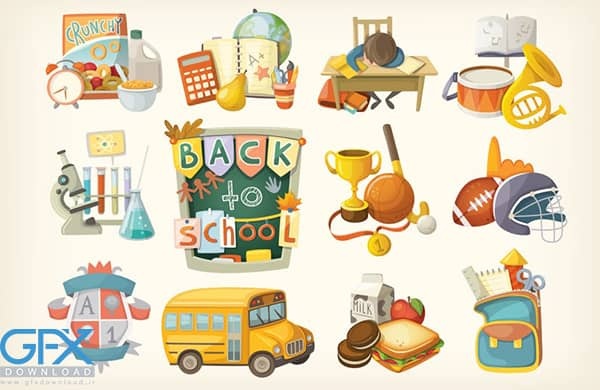 در این پست شاهد طرح های آماده وکتور با موضوع های آموزشی، مدرسه، وکتور مدرسه و آموزشی می باشید. دانلود وکتور عناصر مدرسه با موضوع مدرسه و آموزش با کیفیت عالی شامل المان های تحصیل، دانش آموزان و طرح های مرتبط با مدرسه و آموزش می باشد. فرمت این فایل های EPS, PNG می باشد که به راحتی می توانید آنها را در نرم افزار ایلاستریتور ویرایش کرده و طرح دلخواه خود را ایجاد کنید. مجموعه ای از تصاویر بردار در موضوعات مختلف اتوبوس مدرسه، کیف مدرسه، میز تحریر و وسایل مدرسه می باشد. همچنین تصاویری از غذای صبحانه و ناهار و بچه ای که مشغول تکالیف است وجود دارد.