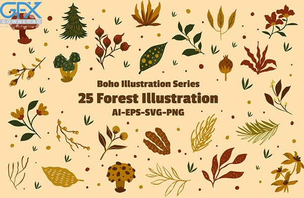 دانلود رایگان 25 وکتور عناصر جنگل به سبک بوهو