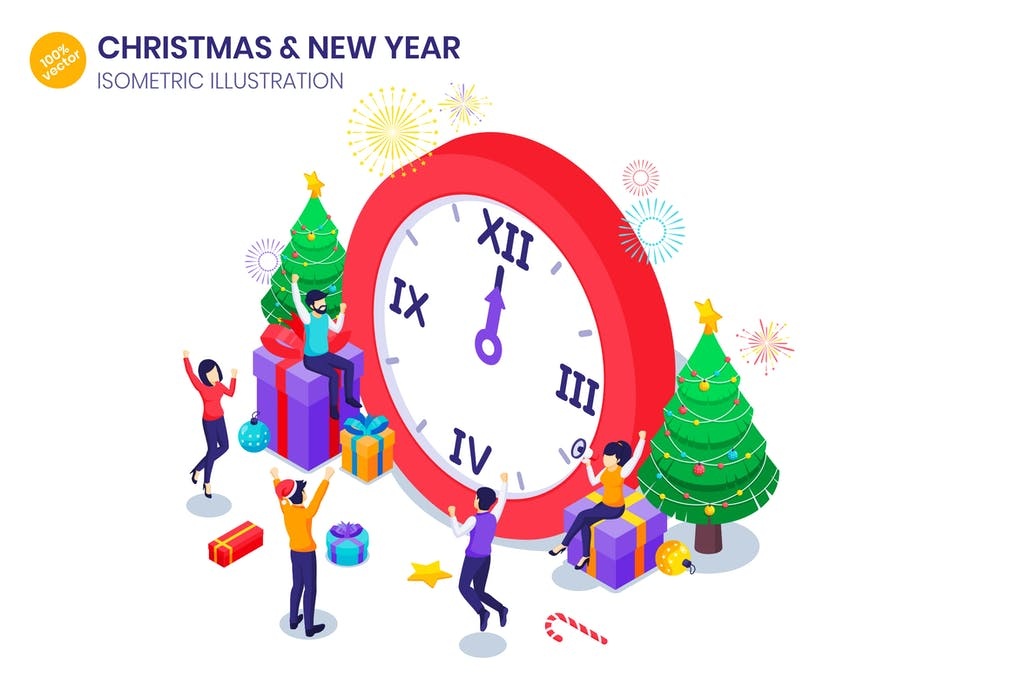 دانلود وکتور تبریک سال نو کریسمس ایزومتریک