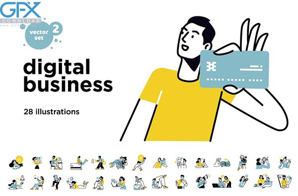 مجموعه ای از تصاویر زنان و مردان در فعالیت های مختلف تجارت آنلاین، ارتباطات، بازاریابی. سبک وکتور مدرن برای طراحی گرافیک و وب، ارائه تجاری، رسانه های اجتماعی و مطالب بازاریابی. آسان برای ویرایش، سفارشی کردن و تغییر اندازه. وکتور کاراکتر های مفهوم کسب و کار دیجیتال با فرمت های EPS, JPG, SVG, PNG ارائه شده است که قابل ویرایش و سفارشی سازی در نرم افزار ایلاستریتور می باشد.