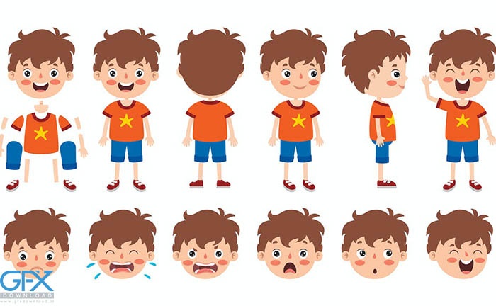 1- دانلود وکتور مجموعه کاراکترهای کارتونی پسر بچه