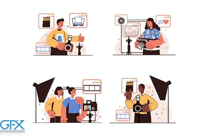 دانلود وکتور استودیو عکس و کاراکتر های عکاس کارتونی