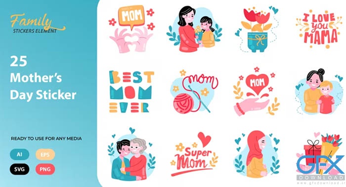دانلود وکتور مجموعه استیکرهای روز مادر Mother's Day Sticker