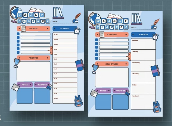 اگر به دنبال یک طرح وکتور برنامه هفتگی مدرسه حرفه ای و خلاقانه هستید، این مجموعه از فایل های لایه باز وکتور برنامه هفتگی کلاس درسی گزینه ای عالی برای معلمان، طراحان گرافیک و دانش آموزان است. این طرح ها با رنگ بندی شاد و المان های آموزشی طراحی شده اند تا بتوانید برنامه درسی یا ساعات کلاس را به شکل زیبا و منظم نمایش دهید. فایلها بهصورت وکتور و کاملاً لایه باز طراحی شده اند و بهراحتی در نرم افزارهایی مانند ایلوستریتور و کورل قابل ویرایش هستند.