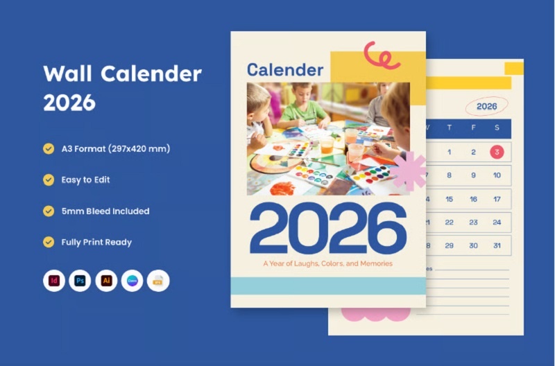 ✅ نام وکتور2:Colorful Education Wall Calendar 2026