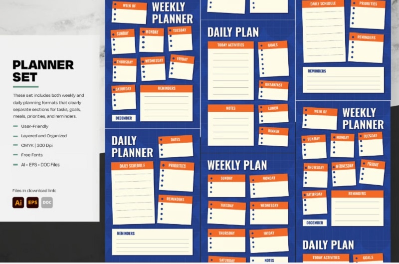 ✅ نام وکتور4: Utilitarian Planner Set With Bold Blue