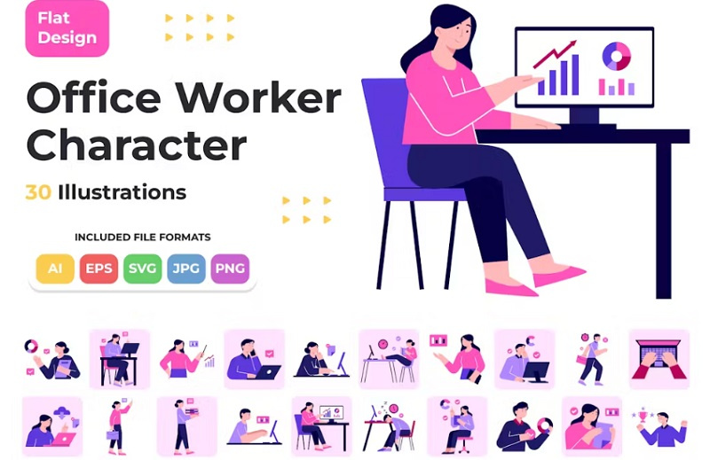 ویژگی های مجموعه وکتور کاراکتر های کارمند و شاغل از جی اف ایکس دانلود