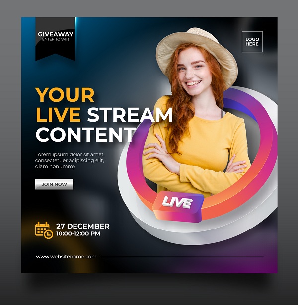 دانلود رایگان وکتور لایه باز پست تبلیغاتی لایو اینستاگرام