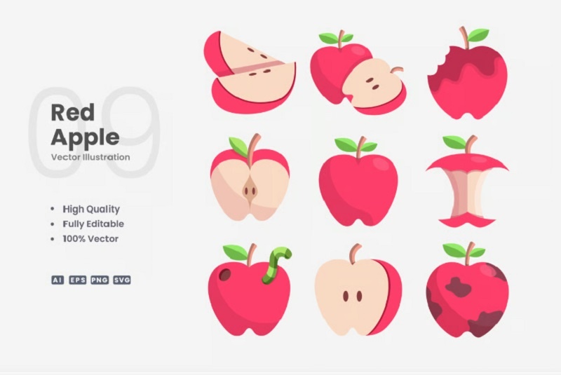 اگر به دنبال طراحی های گرافیکی با کیفیت هستید، استفاده از وکتور سیب سرخ و وکتور سیب گاز زده می تواند جلوه ای خاص به پروژه تان بدهد. در این مجموعه طراح های زیبا وکتور سیب؛ از سیب کامل تا سیب گاز زده با استایل های متنوع نیز در دسترس طراحان قرار دارد. همچنین برای طرح هایی با حال و هوای خلاقانه یا مفهومی، استفاده از وکتور سیب گاز زده می تواند حس تازگی و طراوت را به خوبی منتقل کند. این فایل های وکتور با کیفیت بالا، گزینه ای ایدهآل برای چاپ، طراحی بنر، پوستر یا حتی طراحی اپلیکیشن هستند.