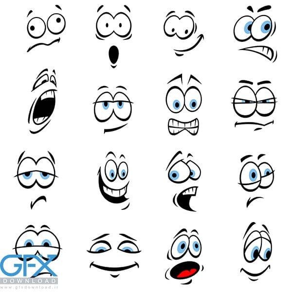 این فایل وکتور شامل چشم های کارتونی با حالات و احساسات مختلف، وکتور شکلک های لبخند، عناصر کاراکتر های شاد ، غمگین ، عصبانی ، دیوانه ، احمق ، شوکه ، کمیک ، ناراحت ، احمقانه، ترسناک، متعجب و غیره است. دانلود وکتور مجموعه شکلک های کارتونی شامل مجموعه ای زیبا و کامل از انواع شکلک های خنده دار و بامزه در حالت های صورت مختلف قابل استفاده در انواع طرح های گرافیکی و تبلیغاتی می باشد. این طرح با فرمت eps و قابل ویرایش در نرم افزار ایلوستریتور و کورل دراو است.