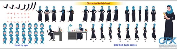 در این فایل وکتور شاهد یک زن مسلمان با حجاب می باشید که در حال راه رفتن است. این مدل طراحی شخصیت دانش آموز دختر عرب با انیمیشن چرخه راه رفتن می باشد. وکتور شخصیت دخترانه در موقعیت های متحرک و حالت های مختلف جلو ، سمت راست ، نمای عقب و نماهای مختلف. دانلود وکتور راه رفتن کاراکتر زن مسلمان مناسب برای ساخت تیزر های تبلیغاتی، ویدئو های تضیح دهنده ، استفاده در برنامه ها فلش، طراحی های تبلیغاتی و گرافیکی. شامل المان های مختلف اجزای دست، دست، صورت و غیره. فرمت این فایل eps می باشد که هر کدام از این المان ها را به راحتی می توانید در نرم افزا ایلاستریتور ویرایش و سفارشی سازی کنید. این فایل به صورت برداری و وکتور طراحی شده است که بدون افت کیفیت می توانید در هر سایز و ابعادی استفاده کنید.