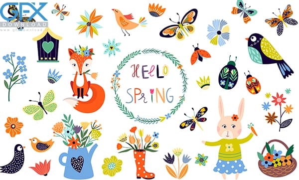 در این مجموعه شاهد یک طرح آماده با فرمت برداری و وکتور از مجموعه عناصر تزئینی و دکوراتیو فصل بهار می باشید. این مجموعه شامل عناصر زیبا و جذابی مثل گل های زیبا ، پرنده های زیبا، پروانه و ... می باشد. فرمت این فایل eps می باشد و قابل ویرایش در نرم افزار ایلاستریتور می باشد. برای دانلود وکتور عناصر تزئینی فصل بهار به ادامه مطلب مراجعه کنید.