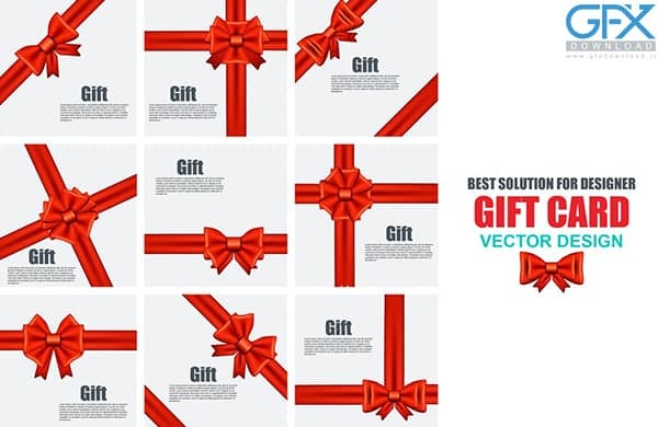 دانلود وکتور مجموعه کارت هدیه لایه باز با روبان قرمز