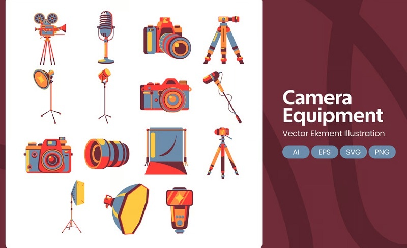 1- دانلود وکتور دوربین عکاسی و فیلمبرداری به همراه تجهیزات