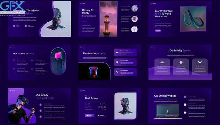 این قالب ارائه می تواند برای اهداف مختلفی مانند: کسب و کار شرکتی، مشخصات شرکت، آموزش، پیشنهاد پروژه، آژانس دیجیتال، مدیریت، راه اندازی، بازاریابی دیجیتال، صنعت، گزارش سالانه، فناوری، نمونه کارها، تبلیغات و همچنین قابل استفاده باشد. قالب رایگان پاورپوینت دیجیتال NFT برای تولید سفارشی استفاده می شود. همه عناصر قابل ویرایش هستند از شکل تا رنگ ها و نیازی به نرم افزار دیگری برای ویرایش آن ندارند.