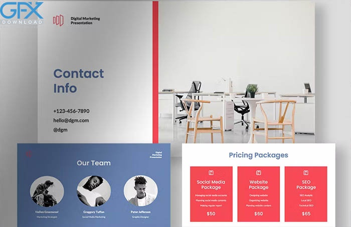 اگر به دنبال یک قالب ارائه حرفه ای هستید، Matrix، یک قالب ارائه بازاریابی دیجیتال مدرن ساده با تم آبی ، بهترین گزینه برای ارائه شما است. این قالب پاورپوینت دیجیتال مارکتینگ Matrix به سادگی طراحی شده است تا به شما کمک کند ایده های تجاری خود را به روشی جذاب ارائه دهید. ترکیب رنگی جذاب سفید، آبی و رز تصویری قوی، محکم و حرفه ای برای شرکت شما ایجاد می کند. علاوه بر این، این قالب با محتوای جامعی پشتیبانی میشود که میتوانید با توجه به بینشها و ایدههای تجاری خود آن را تنظیم کنید. با این قالب ارائه جذاب و حرفه ای ایده های برجسته بازاریابی دیجیتال خود را ارائه دهید.