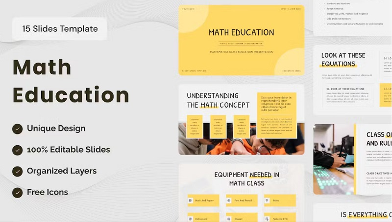 در این بخش با معرفی یک قالب پاورپوینت ریاضی جدید با شما همراه هستیم. این تم پاورپوینت ریاضیات با نام Math Education با طراحی حرفه ای و مدرن مناسب آموزش ریاضی، هندسه، محاسبات و ... است. شامل 15 اسلاید بی نظیر با کیفیت عالی و قابلیت ویرایش آسان.