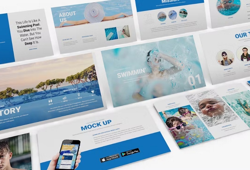 ✅ نام قالب پاورپوینت: Swimming
