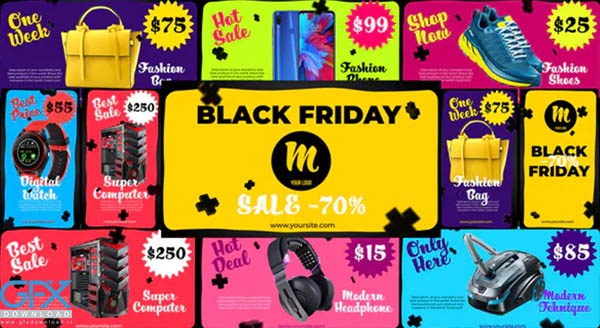 می توانید از کنترلر رنگ هوشمند برای ایجاد نتایج جالب استفاده کنید. پروژه افتر افکت تیزر تبلیغاتی Black Friday - Product Promo روشی منظم برای تبلیغ و معرفی یک رویداد آینده، پیشنهادات ویژه، محصولات منحصر به فرد و اقلام با تخفیف. مخاطبان خود را با این قالب تمیز، رنگارنگ و متحرک خلاقانه تحت تاثیر قرار دهید. موجود در رزولوشن HD.
