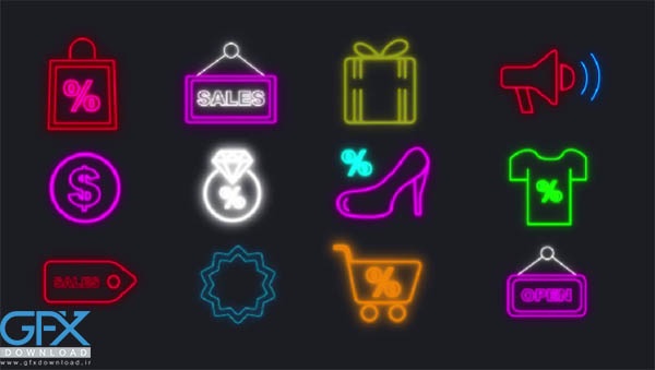 دانلود پروژه افتر افکت 15 آیکون نئون برای جمعه سیاه