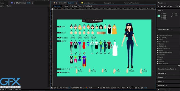 پروژه افتر افکت جعبه ابزار پرواز در هواپیما Flying on Airplane . این یک جعبه ابزار انیمیشن مدرن و آسان برای استفاده است که به خوبی سازماندهی شده و کاملاً قابل تنظیم است. از این جعبه ابزار برای ایجاد انیمیشن های سریع یا رندر صحنه های از پیش متحرک استفاده کنید. برای ویدیوهای توضیح دهنده، آگهی های بازرگانی یا یک ویدیوی ساده اینستاگرام، انیمیشن های متقاعد کننده ایجاد کنید. ظاهر شخصیت این پروژه را به طور کامل با بیش از 40 عنصر مختلف از جمله لباس، مدل مو، فرم صورت، کفش و حالت دست تغییر دهید. کنترل کننده های رنگ برای تغییر هر عنصر در چند ثانیه.