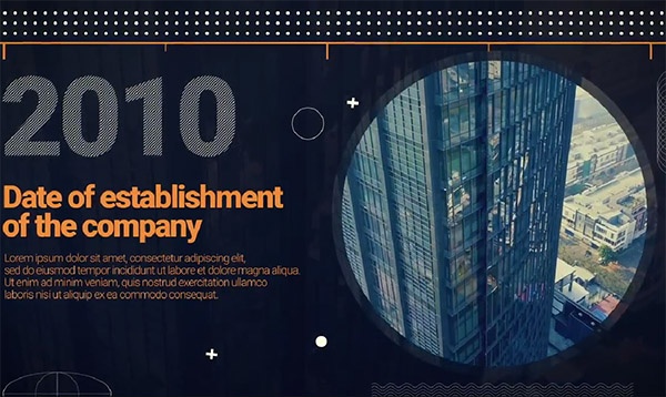 این پروژه افتر افکت اسلایدشو تجاری دارای طراحی شیک با انیمیشن های متنی مدرن و جلوه های ترانزیشن است. شامل 36 مکاننمای متن، 12 مکاننمای رسانه و 1 مکاننمای لوگو است. می توانید از آن برای نمایش ترتیب زمانی رویدادها استفاده کنید. یک آموزش تصویری در بسته گنجانده شده است. هیچ پلاگینی مورد نیاز نیست.