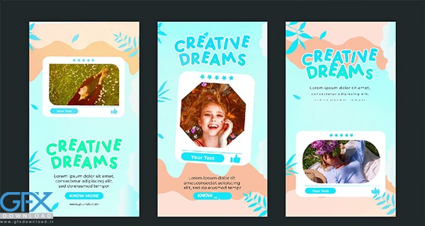 پروژه افتر افکت قالب های استوری اینستاگرام خلاقانه Creative Dreams Instagram قابل اجرا بر روی ورژن After Effects Version CC نرم افزار افتر افکت میباشد که به پلاگین نیاز ندارد. این پروژه بدون موزیک کیفیت 1920x1080 و قابل ویرایش ارائه شده است که میتوانید آن را با تهیه اشتراک ویژه از جی اف ایکس دانلود تهیه نمایید.
