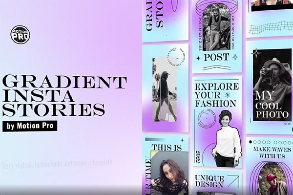 این پروژه افتر افکت اینستاگرام با طراحی گرادینت دارای 12 طرح عمودی شیک است که از شیب های رنگارنگ برای بهبود رسانه شما استفاده می کند. شما می توانید متغیرهای متنی، متغیرهای رسانه و رنگ ها را مطابق با نیاز خود ویرایش کنید. یک آموزش تصویری گنجانده شده است. امروز آن را دانلود کنید! هیچ پلاگینی لازم نیست.