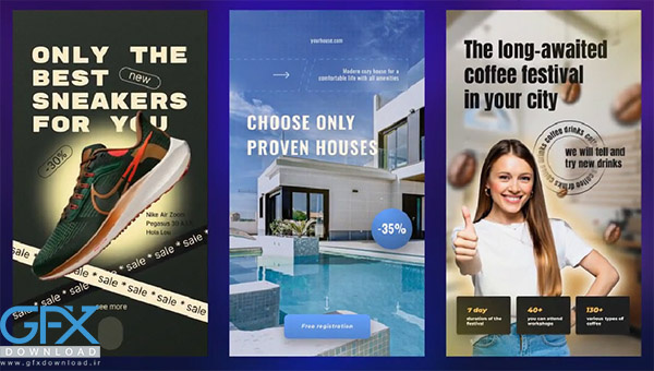 این پروژه افتر افکت دارای استوری های عمودی مدرن است. شامل 10 طرح مد روز و منحصر به فرد است. می توانید متن را ویرایش کنید و رسانه خود را قرار دهید. می توانید رنگ ها را تنظیم کنید. می توانید از آنها برای تبلیغ کسب و کار خود، تبلیغ یک کانال ورزشی یا زیبایی و موارد دیگر استفاده کنید. یک آموزش تصویری گنجانده شده است.
