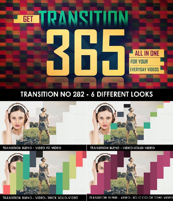 دانلود مجموعه 365 ترانزیشن مختلف مخصوص افتر افکت قابل اجرا بر روی ورژن .CS4 به بالا نرم افزار افترافکت میباشد که به پلاگین نیاز ندارد. این پروژه بدون موزیک کیفیت 1920*1080 و قابل ویرایش ارائه شده است که میتوانید آن را با تهیه اشتراک ویژه از جی اف ایکس دانلود تهیه نمایید.