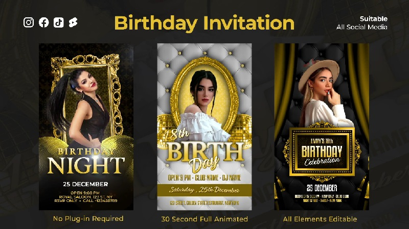 ✅ نام پروژه افتر افکت: Luxury Birthday Instagram Reels✅ شامل 3 قالب استوری عمودی