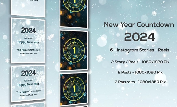 ✅ نام پروژه افتر افکت: New Year Countdown 2024 - Instagram Stories✅ استفاده و ویرایش آسان
