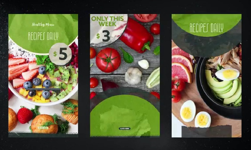 پروژه افتر افکت 6 استوری غذای سالم Healthy Food Stories