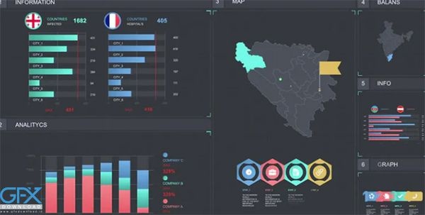پروژه افتر افکت طراحی اینفوگرافیک برای ساخت و طراحی انواع اینفوگرافیک. Infographic Designer یک پروژه اینفوگرافیک افتر افکت منحصر به فرد است که می توانید برای ایجاد طیف وسیعی از اینفوگرافیک های تمیز ، رنگارنگ و خلاقانه انیمیشنی برای فیلم های خود استفاده کنید. شامل مجموعه المنت و ابزار های کاربردی از جمله انواع نمودار انیمیشنی، مجموعه آیکون ها و ... برای ساخت تیزر و کلیپ های اینفوگرافیک . این پروژه افتر افکت ابزار اینفوگرافیک شامل نمودارها ، نقشه ها ، اطلاعات ، پرچم ها و مجموعه های آیکون است. به سادگی آنها را با استفاده از کنترلر رنگی هوشمند ، مطابق با نام تجاری خود ، ادیت کنید. مخاطبان خود را با این پروژه پویا و متحرک جذب کنید. بدون پلاگین مورد نیاز است.
