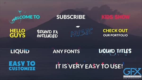 پروژه افتر افکت Liquid Titles یک قالب آماده عالی و کاربردی با افکت مایع برای نمایش متن و تایتل های پروژه شما است. این پروژه متشکل از متن متحرک به سبک مایع با افکت صوتی می باشد. می توانید رنگ ها را تغییر دهید و متن خود را با هر فونتی تایپ کنید. از این عناوین در کارهای خود به عنوان نمایش های تلویزیونی ، ارائه ها ، حوادث ، وبلاگ های زیبایی و سایر پروژه ها استفاده کنید. برای استفاده از این پروژه افتر افکت تایتل به هیچ پلاگین و افزونه ای نیاز ندارید. بدون پلاگین مورد نیاز است. امکان ویرایش و شخصی سازی و استفاده آسان. این پروژه با کیفیت hd ارائه شده است.