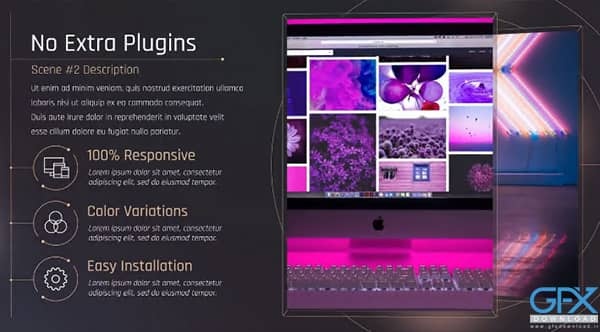 با کمک این پروژه آماده افتر افکت معرفی سایت حرفه ای میتوانید برای معرفی وبسایت، رابط کاربری نرم افزار جدید، تبلیغ خدمات سئو و دیجیتال مارکتینگ، معرفی استراتژی جدید دیجیتال مارکتینگ، معرفی خدمات آنلاین و بسیاری موارد دیگر از آن استفاده کنید. پروژه افتر افکت Elegant Website Presentation یک قالب ویدئویی حرفه ای با طراحی شیک و متحرک است که از یک ترکیب خیره کننده از افکت ها برای نمایش و زیبایی رسانه شما استفاده می کند. با این پروژه آماده می توانید قالب وبسایت یا امکانات آن را در چند اسلاید متحرک با استفاده از متن ها و المان های گرافیکی برای کاربران یا مشتری خود نمایش دهید. استفاده از آن بسیار آسان است ، به سادگی متن را ویرایش کنید ، رنگ ها را تنظیم کنید ، در رسانه جدید خود بکشید و رها کنید و رندر را بزنید.