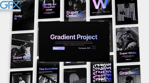 می توانید از آنها برای نمایش محصولات جدید ، نمونه کارها ، عکسهای ورزشی و مد خود استفاده کنید. این پروژه افتر افکت Gradient Project در قالب استوری های چند منظوره می باشد.
