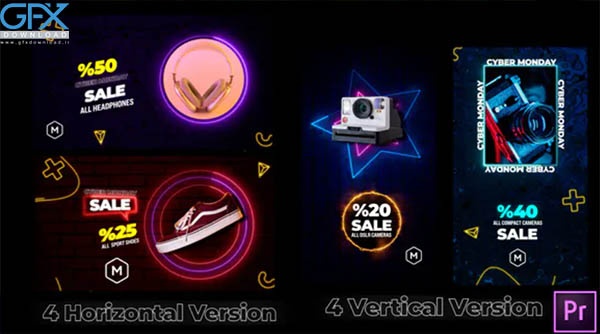 پروژ پریمیر عناوین فروش بزرگ نئونی Neon Big Sale Titles قابل اجرا بر روی ورژن Premiere Pro نرم افزار پریمیر میباشد که به پلاگین نیاز ندارد. این پروژه بدون موزیک کیفیت 1080 * 1920 و قابل ویرایش ارائه شده است که میتوانید آن را با تهیه اشتراک ویژه از جی اف ایکس دانلود تهیه نمایید.