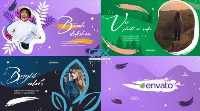 پروژه پریمیر اسلایدشو Brush Slideshow for Premiere Pro MOGRT بسیار کاربردی و ایده آل برای استفاده برای فیلم های مسافرتی ، دوستان یا فیلم های خانوادگی ، برای تبلیغات ، برای افتتاحیه فیلم ها یا پخش.