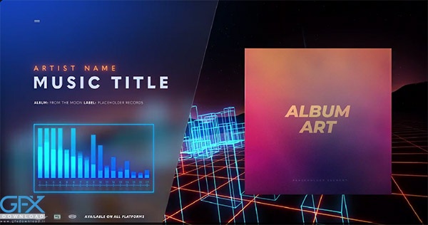 Retro Wave Music Visualizer این یک قالب آماده ویدئویی با تم قدیمی با افکت نئون مخصوص Premier Pro است که میتوانید از آن برای نمایش یک آهنگ جدید آهنگ استفاده کنید. دانلود پروژه پریمیر اکولایزر با تم قدیمی یک مقدمه برای یک انیمیشن حلقه ای با محیط شهر نئون ارائه می دهد. می توانید عناوین را متناسب با نام هنرمند و نام آهنگ خود ویرایش کنید و همچنین اطلاعات اضافی را ارائه دهید. تصویر هنری آلبوم خود را به راحتی برای تبلیغ محتوای خود اضافه کنید. رنگ ها را تغییر دهید تا با برند شما مطابقت بیشتری داشته باشد.