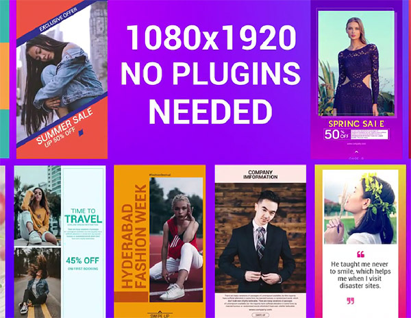 این پروژه دارای 10 طرح عمودی تمیز، رنگارنگ و متحرک خلاقانه است. شما می توانید متغیرهای متن و متغیرهای رسانه را ویرایش و تغییر دهید. می توانید از آن برای نمایش انواع عکس ها یا فیلم ها استفاده کنید. هیچ پلاگینی مورد نیاز نیست.