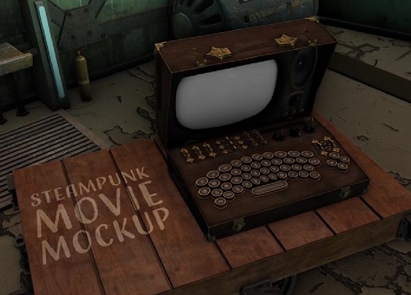 دانلود پروژه پریمیر موکاپ سه بعدی نمایش فیلم Steampunk Movie Mockup