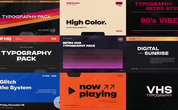 دانلود پروژه پریمیر تایپوگرافی با افکت نوار ویدیویی فیلم قدیمی VHS Typography